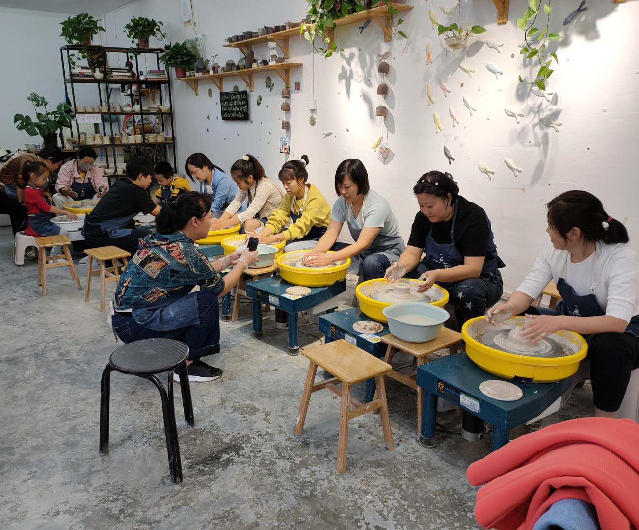 活动现场,陶艺老师首先为大家介绍了陶艺制作的整个流程:拉坯塑型、釉下彩绘、烧制等过程以及其中的技巧。大家在陶艺老师的耐心指导下,将手中的泥料通过拉坯机,在旋转过程中用自己的双手慢慢做出了自己想要的造型,每个人都做出了自己想要的花瓶、水杯、碗、花盆等作品,并通过绘画、上釉、烧制等过程,最终制作成为一件件精美实用的陶艺作品。