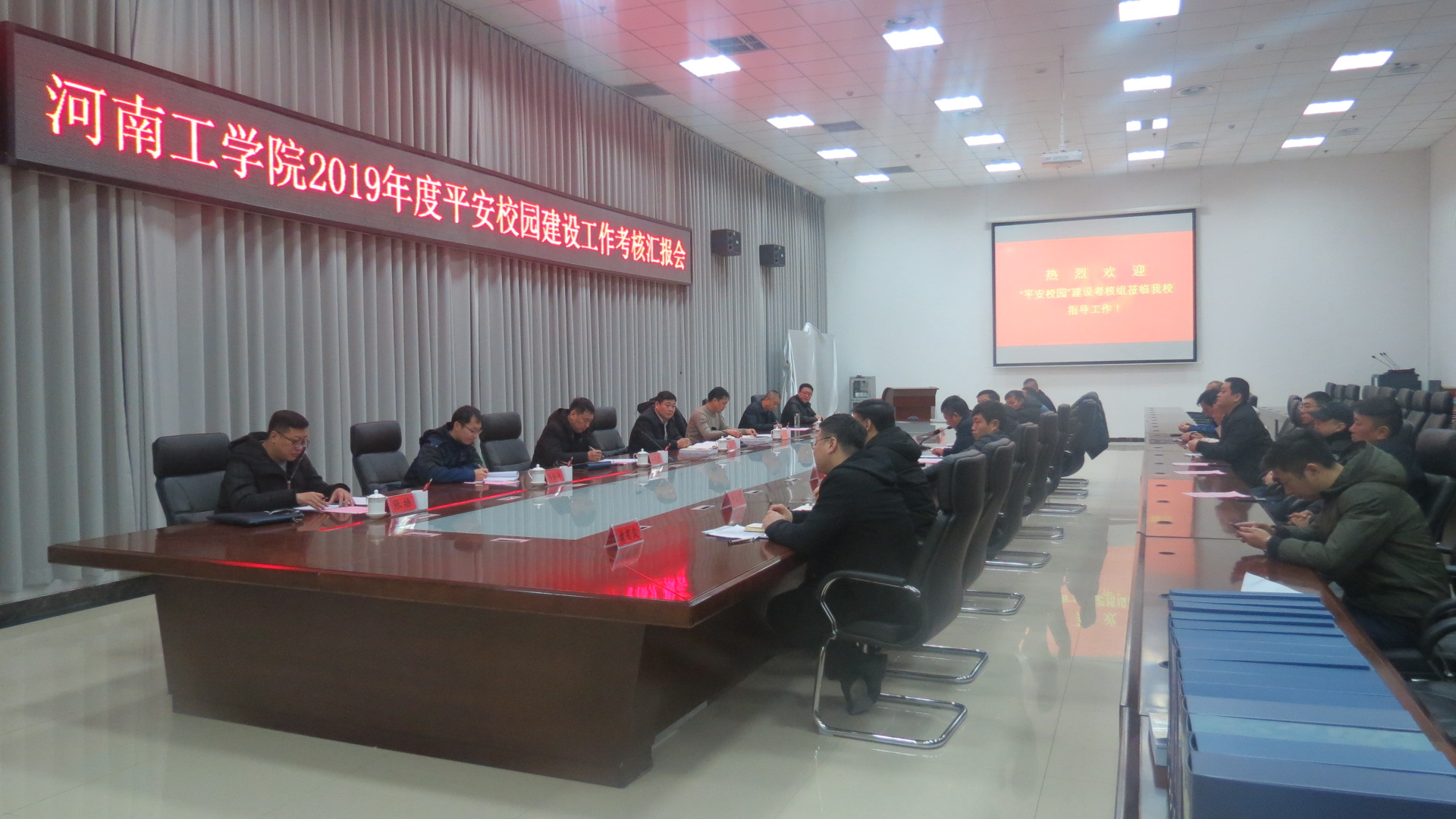 根据新乡市平安建设工作领导小组办公室、新乡市教育局、新乡市公安局、新乡市市场监督管理局、新乡市消防救援大队《关于开展2019年度驻新高校平安校园考核暨先进单位和先进个人评选的通知》(新平安办〔2020〕1号)文件要求,1月19日上午,我校在图书馆第五会议室召开“平安校园”建设工作考核汇报会,以市委市政法委副调研员闫建平为组长的考核组一行七人莅临我校,对“平安校园”建设工作进行考核和指导,副校长张国臣,保卫处、学生处、后勤管理处、校团委、国有资产管理处、教务处等部门负责人出席会议。