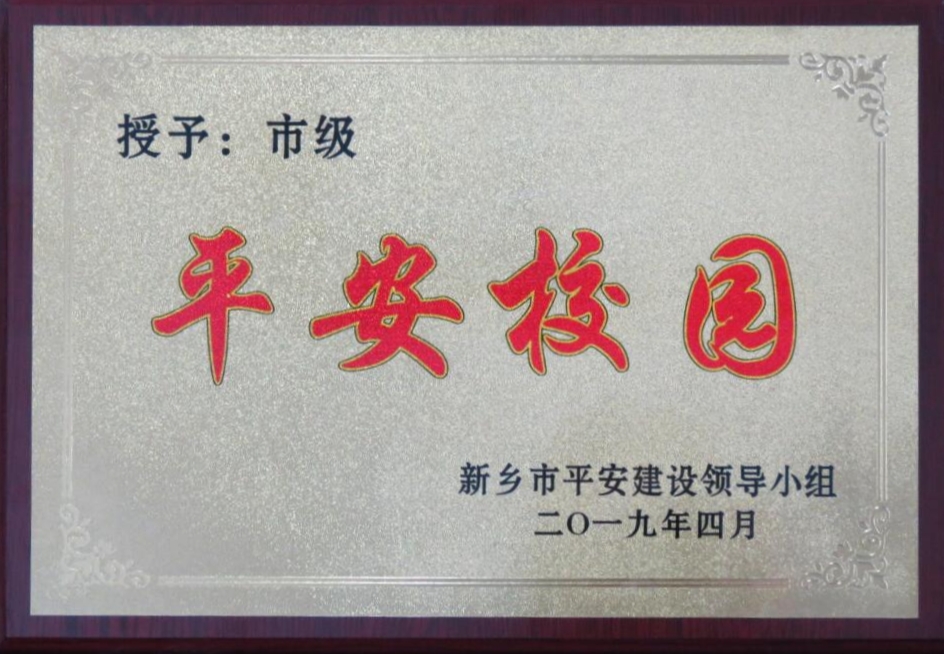 近日,新乡市平安建设工作领导小组下发《关于对2018年度市级“平安校园”命名表彰的通知》,我校被评为2018年度市级“平安校园”。