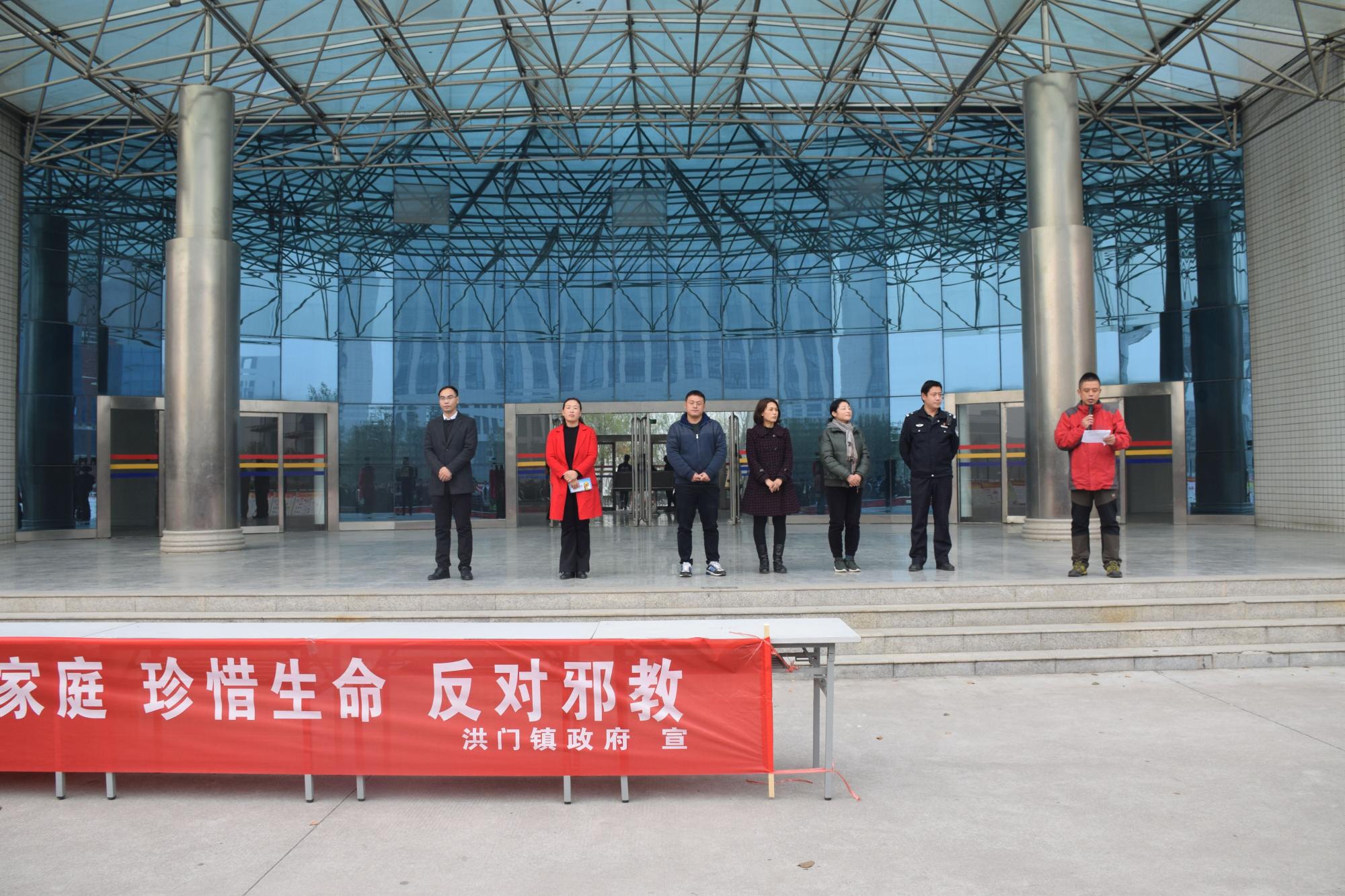 红旗区防反办张碧华主任讲解了开展活动的目的、意义;学生处处长朱松梅同志为大家进行反邪教知识宣讲,为大家讲解了什么是邪教、邪教的危害是什么以及如何防反邪教;各位领导、来宾、师生参会领导、教师代表及学生纷纷在宣传横幅上签下自己的姓名,郑重承诺自觉坚持马克思主义无神论、宗教观和党的宗教政策,遵守国家关于宗教工作的法律法规,以身作则,坚决抵御和防范宗教向校园渗透,并分散开到活动现场进行参观学习,领取宣传单和学习手册。