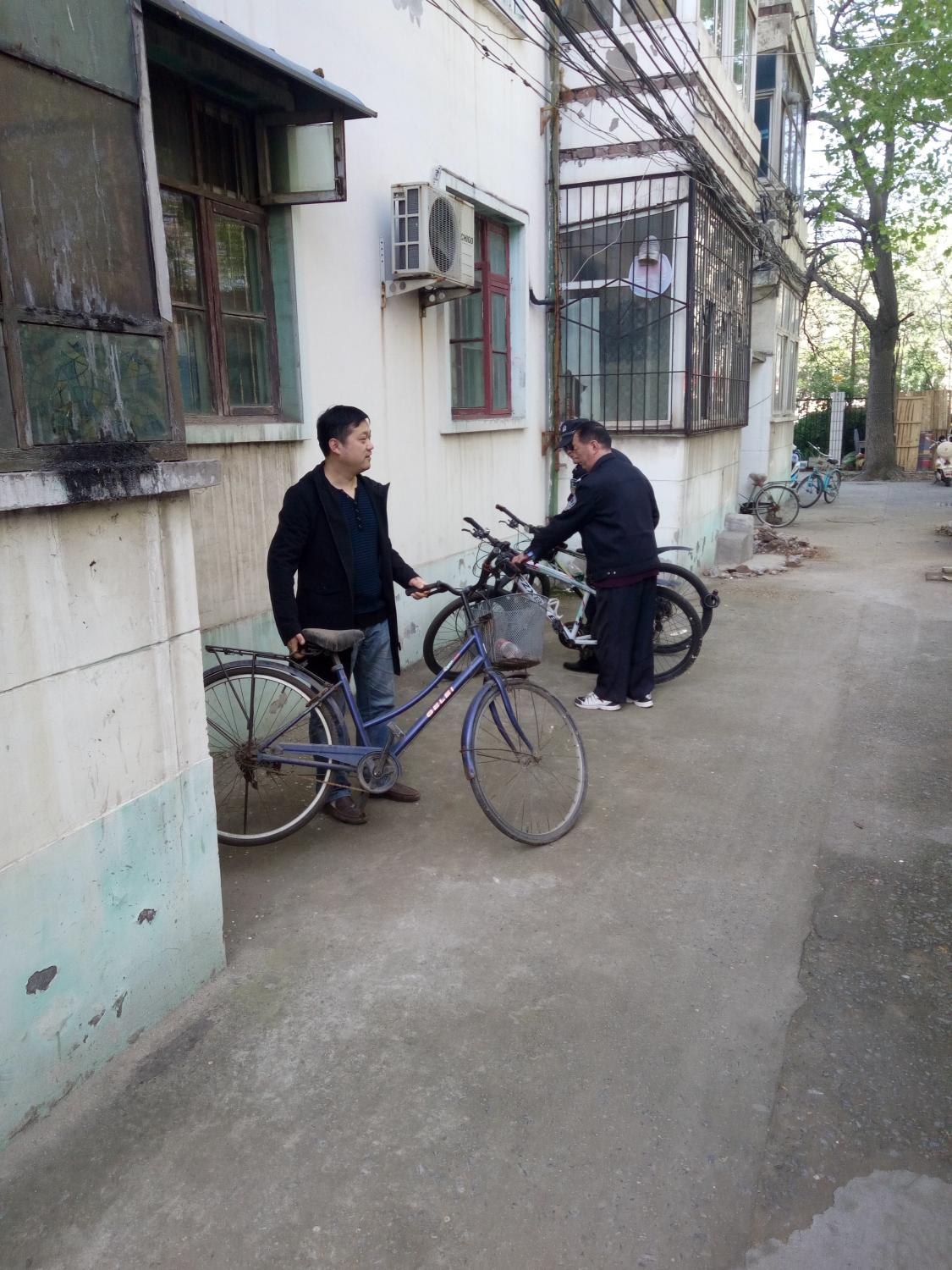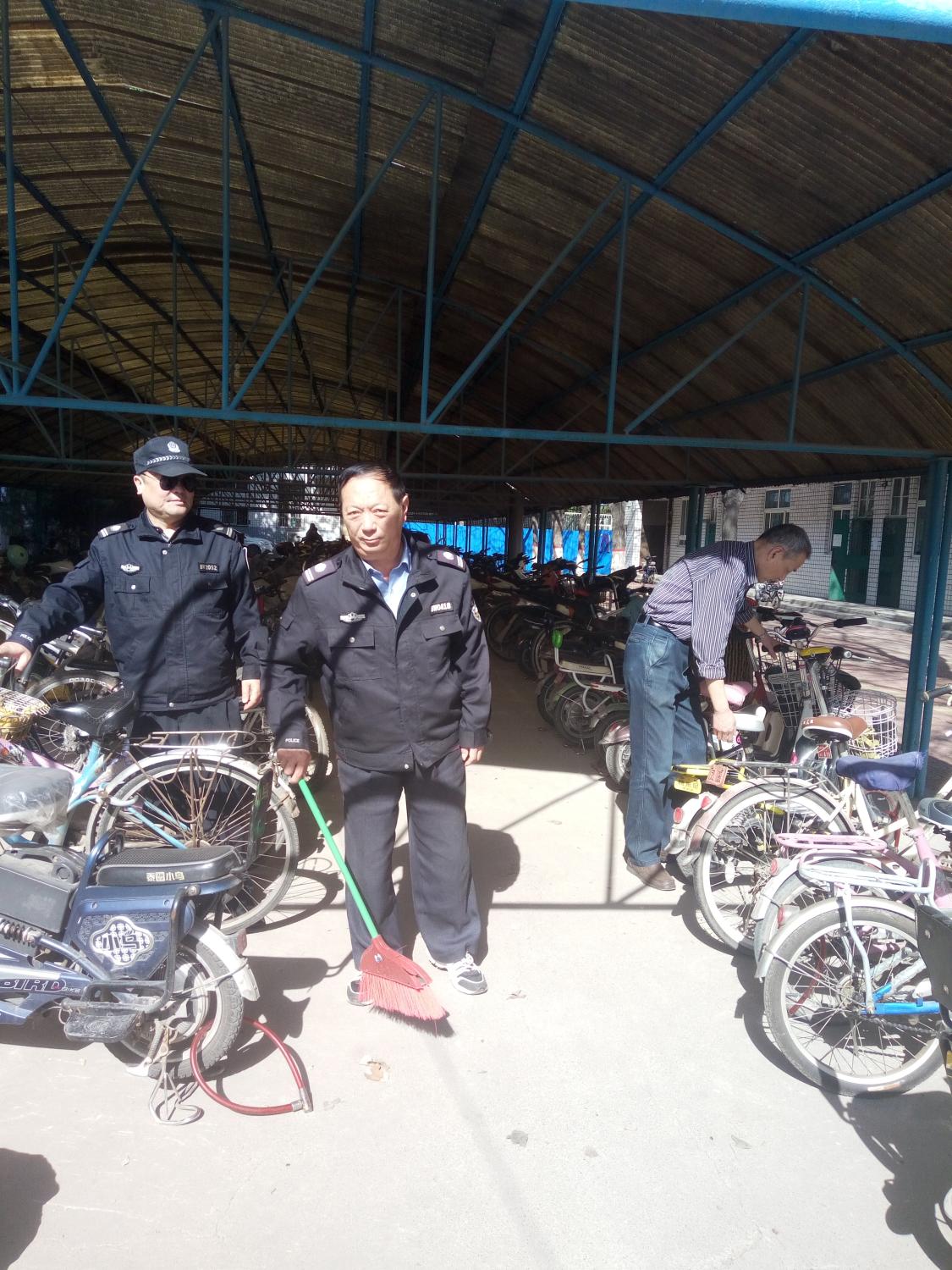 4月6日下午15:00第三党支部第二党小组在学院党委统一学习时间内,本小组组织全体党员认真学习习总书记在全国高校会议上的讲话精神。结合老校区的实际情况,组织本小组全体党员和非党员同志在校区打扫车棚卫生,摆放好学生乱停的自行车、电动车。在1号家属院,对监控室进行安检,对在运行的设备进行认真检查,确保设备良好运行,并对楼前乱放的自行车及电动车进行统一摆放。