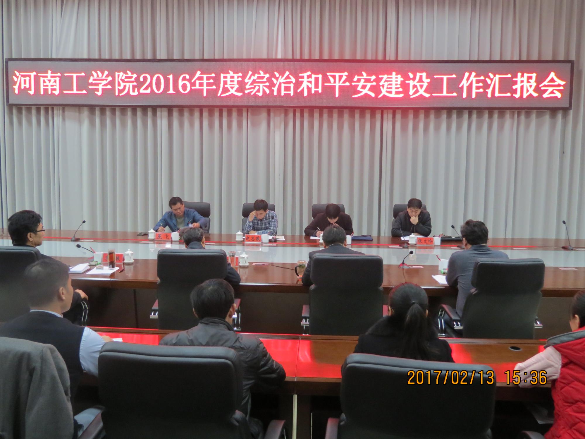 2月13日下午,新乡市综治和平安建设工作考评第六小组一行4人,在工作组组长、市委宣传部赵忠敏的带领下,来我校检查综治和平安建设工作。汇报会在办公楼第五会议室进行,校领导罗士喜、刘云兵、贾国强、李贵敏出席会议,党政办公室、保卫处、宣传部、学生处、校团委、后勤处等相关人员参会。校领导刘云兵主持会议。