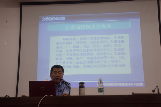 为进一步深入开展平安校园建设,增强学生反骗防骗意识,9月21日下午,我校特聘请新乡市公安局洪门分局5名干警,在公交楼A105、A204等10个多媒体教室,分两场,对2016级本、专科新生进行了校园安全防范知识讲座。