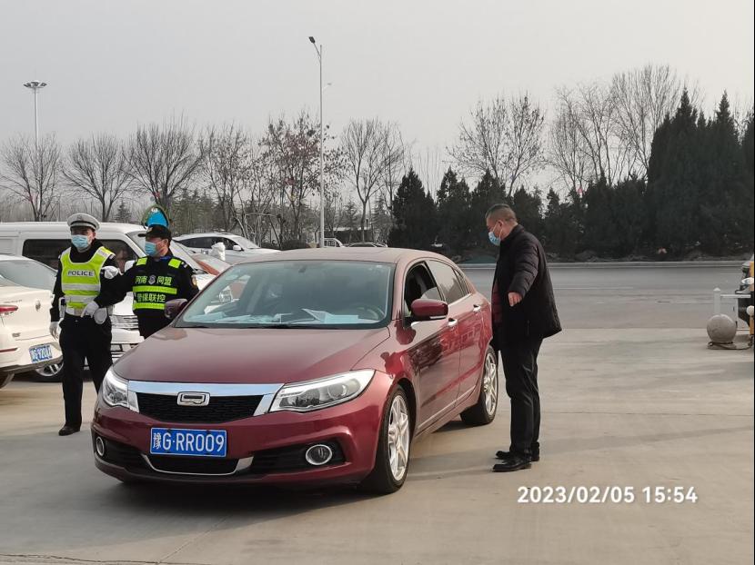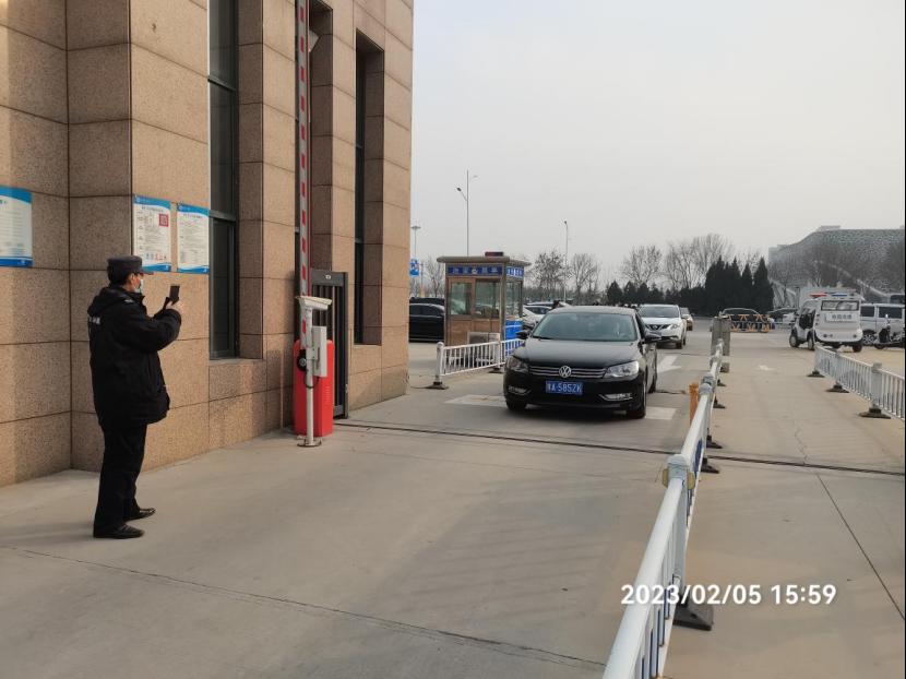 党委保卫部部长、保卫处处长秦永波在南门岗指挥车辆进校