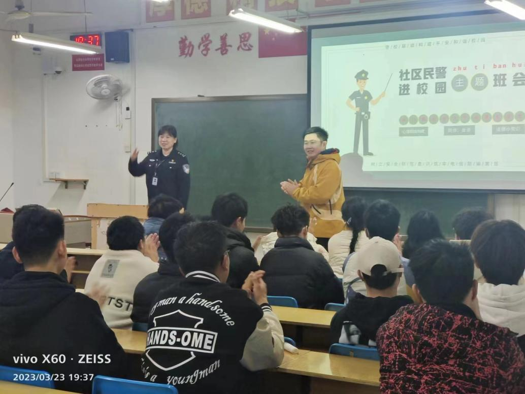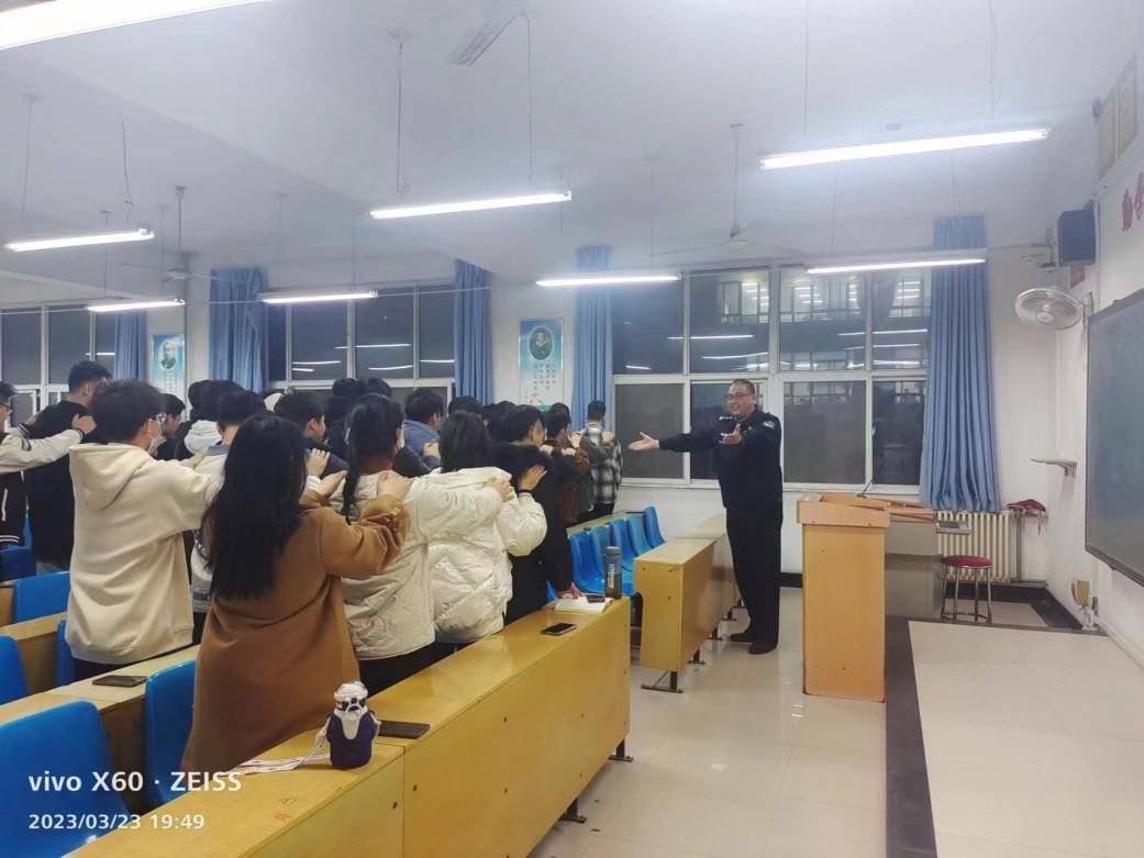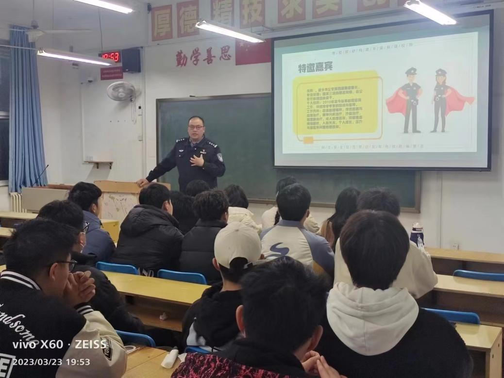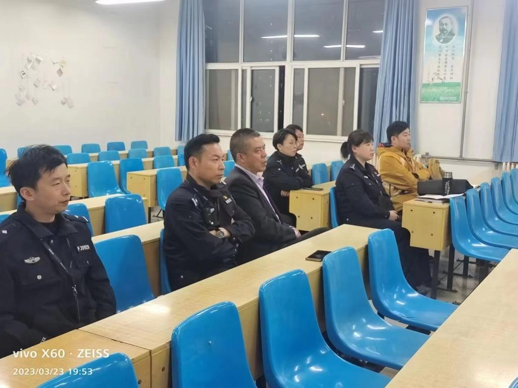 2023年3月23日晚7:30,党委保卫部(保卫处)邀请新乡市公安局张烨警官和大学城警务室为管理学院学生开展“心理健康辅导和防诈骗宣传”座谈会(试点),会议在2号教学楼B303教室召开,党委保卫部部长、保卫处处长秦永波参加座谈。