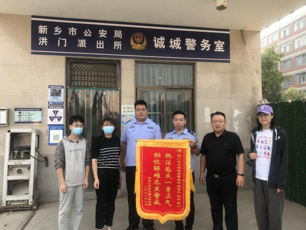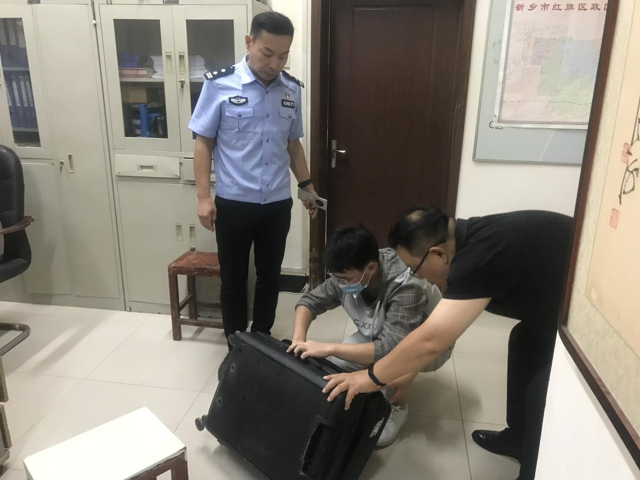 返校期间,接到机械学院一名学生的求助,称返校时行李箱意外丢失,行李箱中有笔记本电脑等贵重物品。河南工学院党委保卫部部长、保卫处处长秦永波和党委保卫部副部长、保卫处副处长郭锐及时联系新乡市公安局红旗分局洪门派出所诚城警务室帮助,警官杨智杰、王欢、罗川在了解情况后,首先安抚学生的情绪,然后根据所说的情况,立即展开查找工作,经过多方面调查和反复查看研究大量监控视频,终于追回丢失的行李箱并联系学校约定时间领回失物,学生看到失而复得的行李箱激动万分,进行确认后箱内没有丢失任何物品。