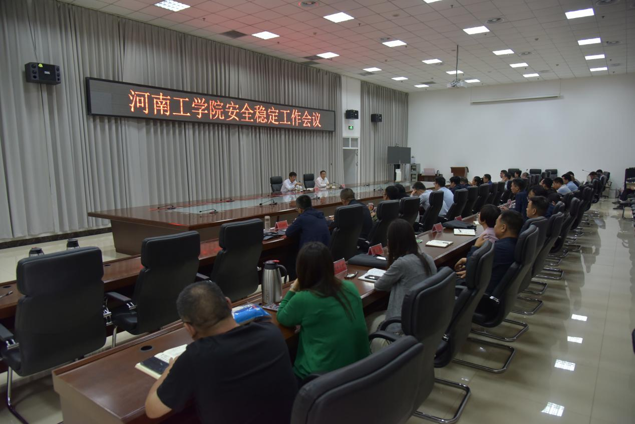 为认真贯彻全省教育系统中秋、国庆“双节”安全稳定工作会议精神,切实做好我校双节期间安全稳定工作。9月25日上午,在全省教育系统中秋、国庆“双节”安全稳定工作视频会议结束之后,我校立即召开全校安全稳定工作会议,迅速贯彻落实上级会议精神,并结合实际安排部署学校安全稳定工作。校党委书记、校长陈丙义,副校长张国臣及各职能部门负责人、各学院党委书记参加本次会议。