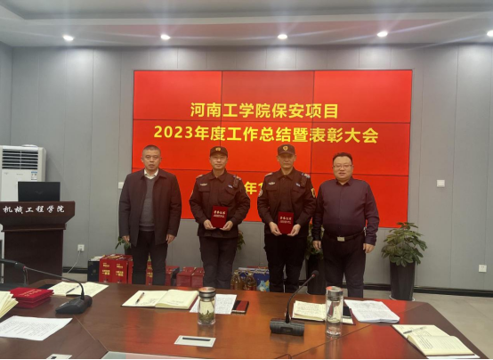 1月30日上午,河南工学院党委保卫部(保卫处、综治办)在6号教学楼306会议室召开了河南工学院2023年度保安工作总结暨表彰大会。党委保卫部部长、保卫处处长、校综治办主任秦永波;党委保卫部副部长、保卫处副处长、校综治办副主任郭锐;党委保卫部(保卫处、综治办)治安科科长宋冬、河南力盾保安服务有限公司豫北事业部总经理马永刚出席会议。会议由保安项目经理武术斌主持。
