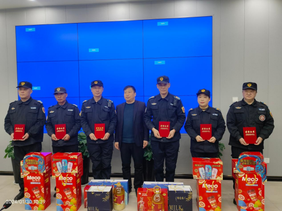 党委保卫部副部长、保卫处副处长、校综治办副主任郭锐在讲话中指出,一年来,保安队伍在党委保卫部(保卫处、综治办)的领导下,在学校安全保卫工作中取得了优异成绩,新的一年仍然面临各种安全风险的挑战,决不能掉以轻心,要重点做好寒假、春节值班执勤工作,确保假期不出纰漏;要尽职尽责,全面做好2024年安保工作,进一步转变工作作风,加强培训,全面提升应急预防处突能力,让安保工作再上新台阶。