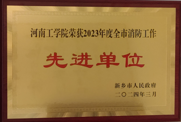 近日,我校被新乡市消防安全委员会授予“2023年度消防工作先进单位”荣誉称号,这是我校第三次获此殊荣。