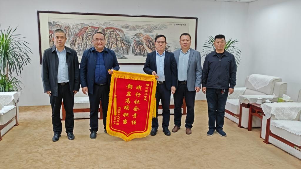 郑先锋对张义旺一行专程来校赠送锦旗表示感谢,并对红旗区政府长期以来在学校发展、平安校园建设等方面给予的大力支持表示感谢。他指出,学校作为驻新高校的一员,地理位置优越,作为深化校地共建合作典范,此次服务既是一项光荣的任务,也是义不容辞的责任。今后,学校将继续发挥自身优势,与政府、企业加强协同联动、深度融合,共同提升城市管理精细化服务和常态化管控水平,为“平安新乡”建设作出新的更大贡献。