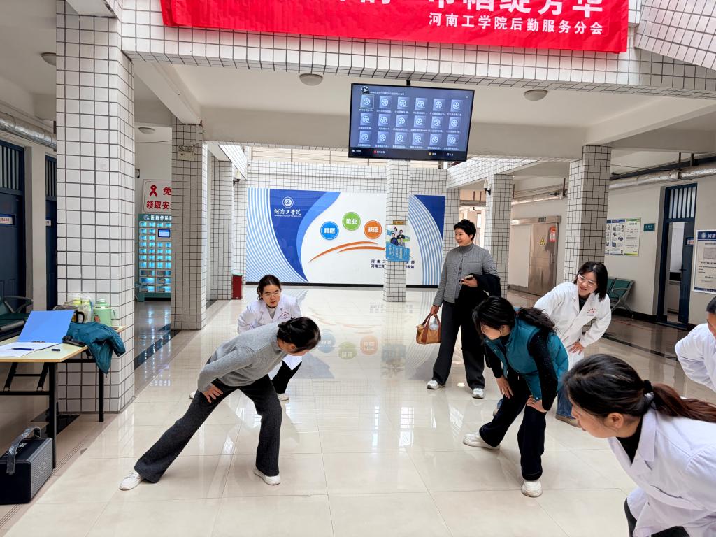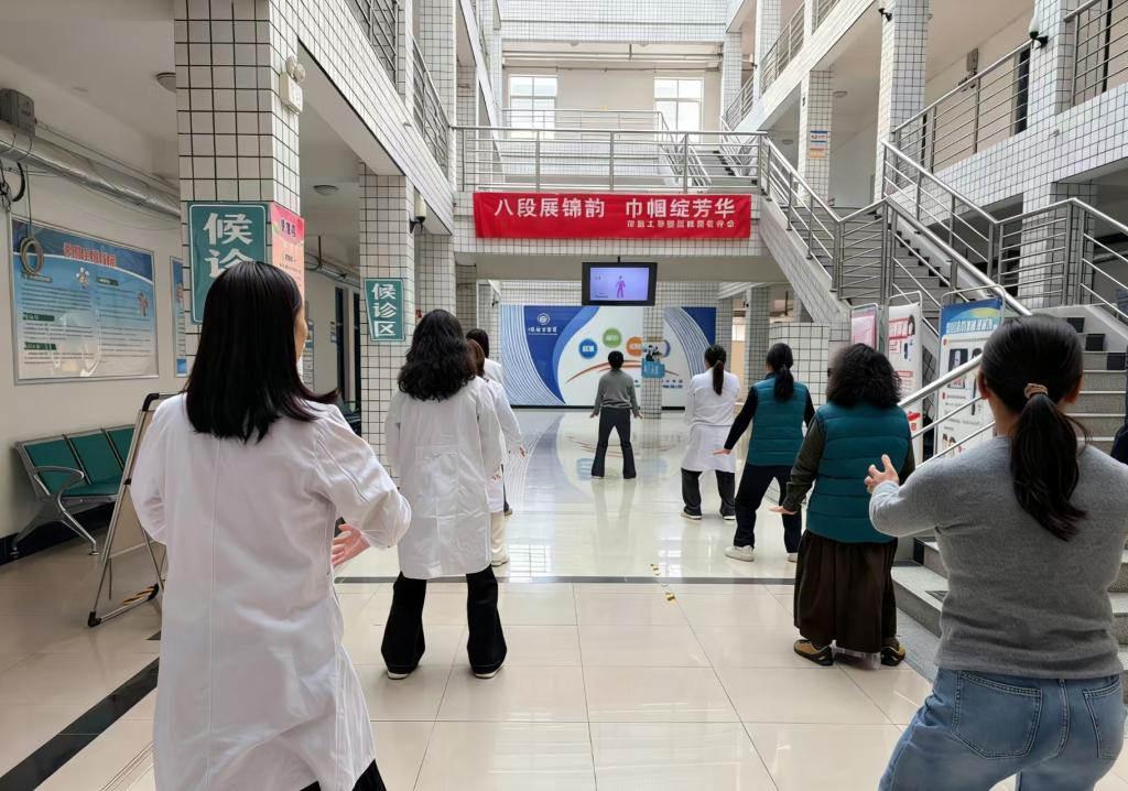 春回大地,万象更新。为庆祝“三八”国际妇女节,弘扬中华传统养生文化,倡导健康生活方式,3月12日下午,河南工学院后勤服务分会在校医院一楼大厅成功举办“八段展锦韵,巾帼绽芳华”八段锦主题健身活动。本次活动由校医院返聘老教师职革青、后勤服务分会主席林新利现场指导,后勤服务分会全体女职工欢聚一堂,共赴这场健康之约。