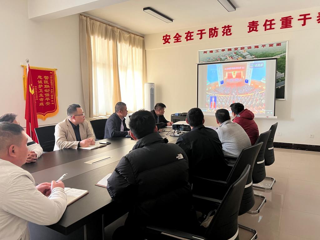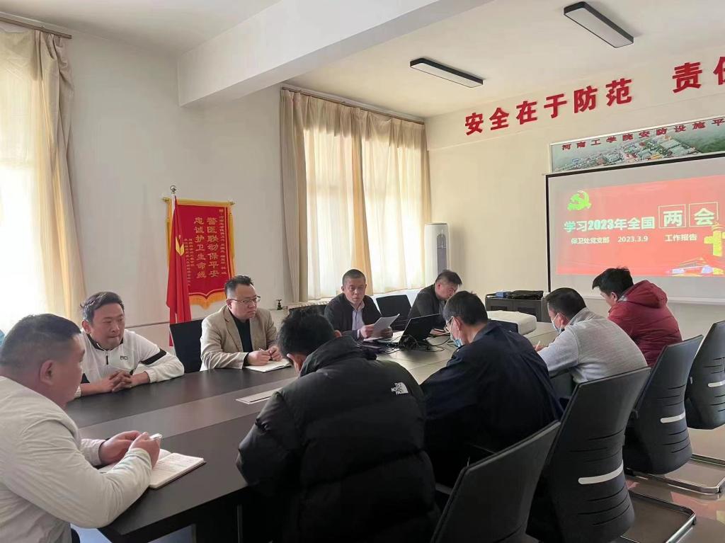 河南工学院党委保卫部(保卫处)组织召开会议,专题学习习近平总书记在全国两会上的重要讲话精神,会议由党委保卫部副部长、保卫处副处长郭锐主持,党委保卫部(保卫处)全体人员参加。