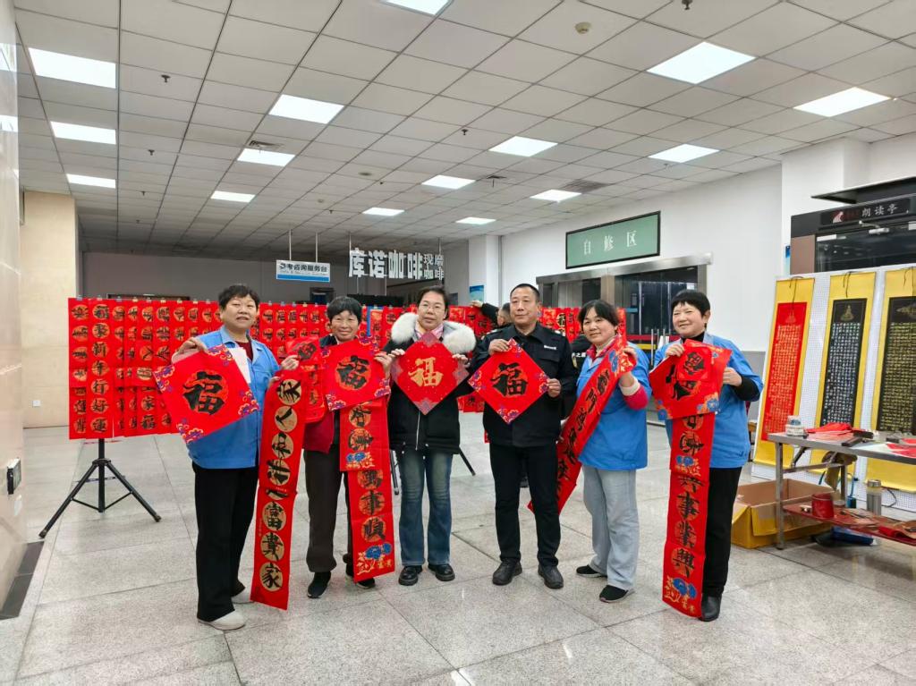 活动现场氛围热烈,前来领取春联和“福”字的教职员工接连不断,他们或驻足在书桌前,静静欣赏书法的魅力,细细品味春联的美好寓意;或精心挑选心仪的字体和内容,脸上洋溢着愉悦的笑容。许多教职工表示,手写的春联比印刷品更具温度、更有年味,这样的活动让学校充满了文化氛围和人文关怀。同时,平日坚守在校园各岗位的保安员也收到了这份特别的节日礼物,切实感受到了来自共建单位的尊重与温暖。
