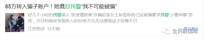 上个月底,江苏扬州就发生这样一起案例,李女士“投资理财”给骗子转了85万,民警前来劝阻,李女士却坚称自己没有被骗,是转给朋友了,要民警“少管闲事”,“我不可能被骗,就算被骗了,也不需要你们负责!”第二天,李女士却又来报警求助。